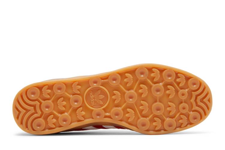 The adidas Gazelle Indoor Scarlet Cloud White features a vibrant red suede upper with contrasting white 3-Stripes logo. The design includes a gum outsole and a classic Gazelle silhouette. Made with rich red leather and suede, the shoe offers a secure fit with a lace-up closure and branded insole. The vintage design pays homage to the iconic Gazelle silhouette, making it a timeless favorite among sneaker enthusiasts.