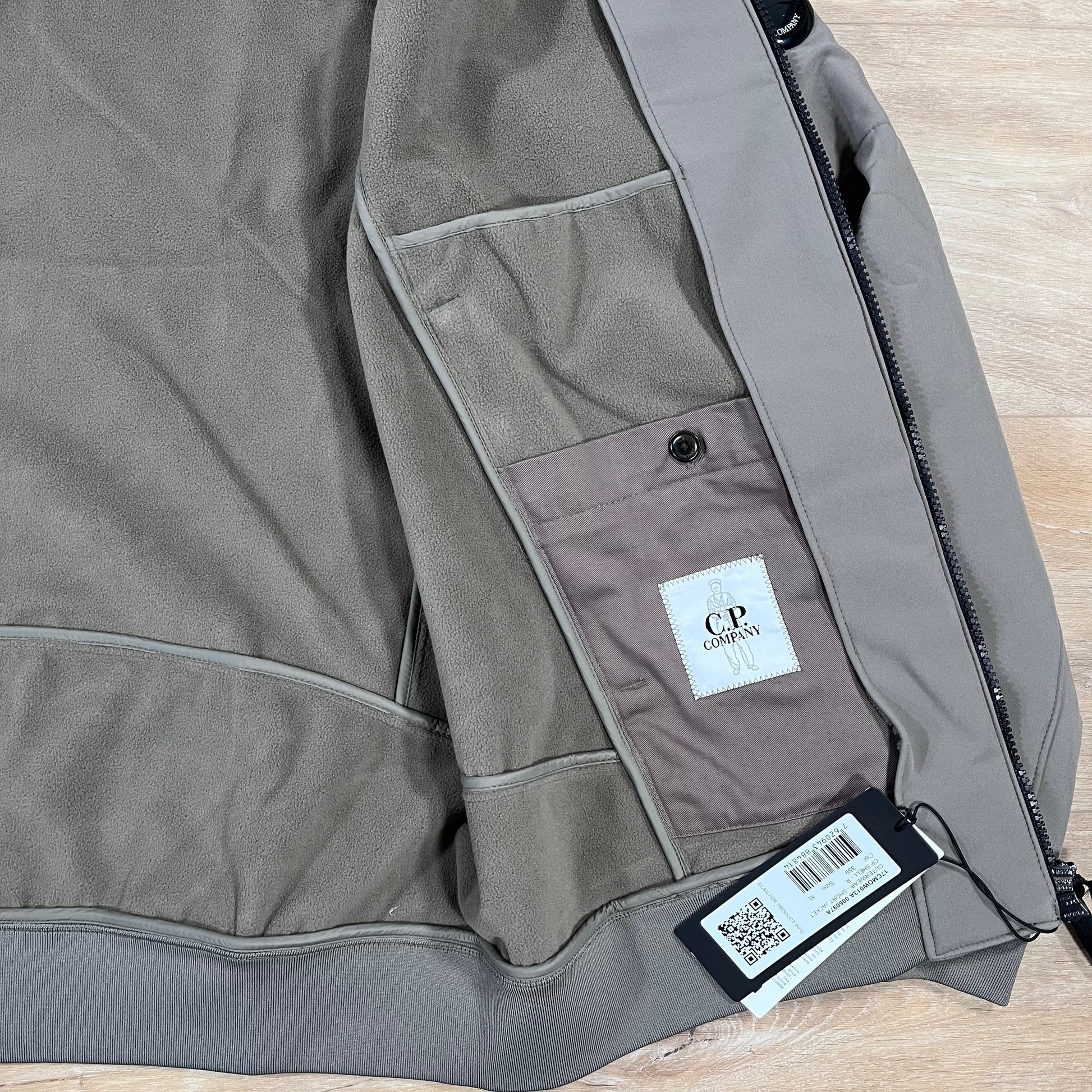 This CP Company hooded jacket is made from C.P. Shell-R, a 3-layer softshell stretch fabric crafted from recycled polyester, offering a 5000mm water column for excellent water resistance and windproofing, with an anti-drop treatment. Features include an adjustable hood, two-way zip fastening, side zip pockets, the iconic lens detail, and ribbed cuffs with a ribbed back hem. It has a regular fit, making it functional yet stylish for everyday wear.