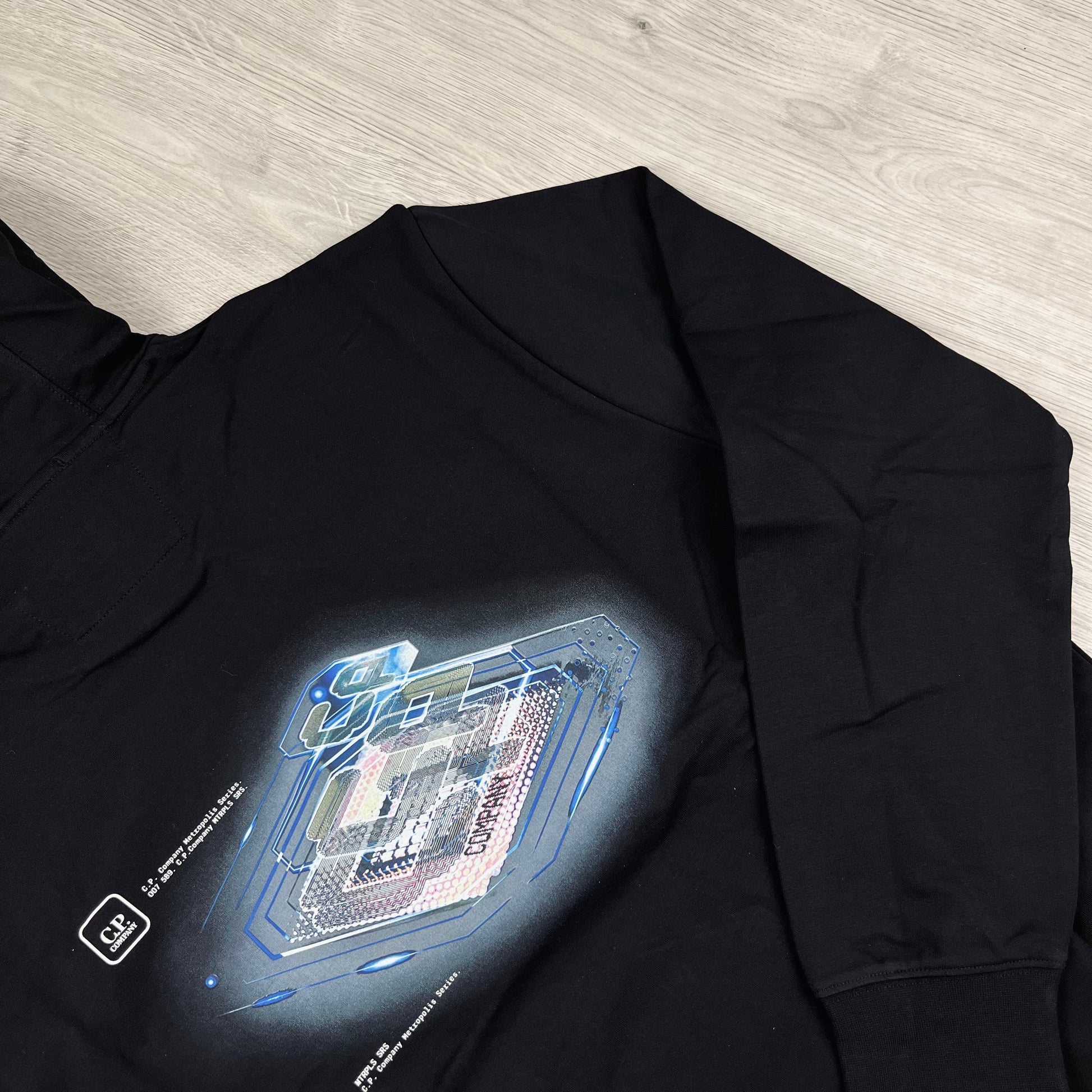 Black CP Company Metropolis stretch cotton fleece hoodie with back and chest printed logo