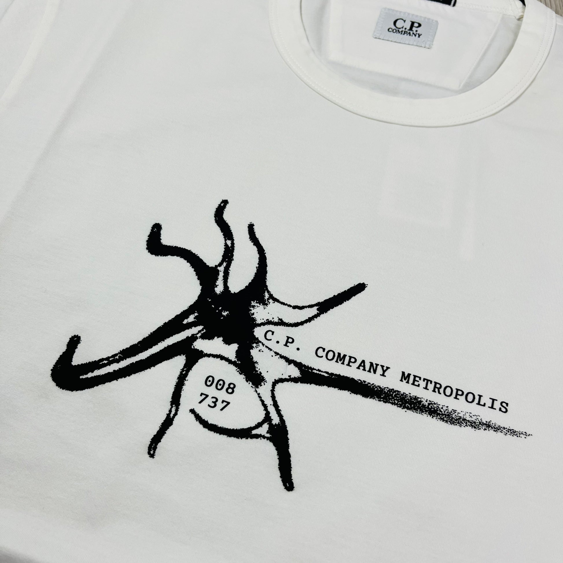 Gauze White CP Company Metropolis T-shirt with black printed logo across the chest
