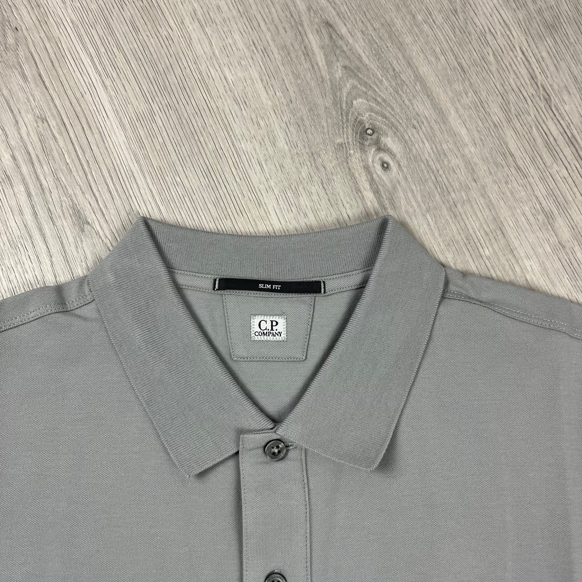 Drizzle Grey CP Company polo shirt with chest patch logo