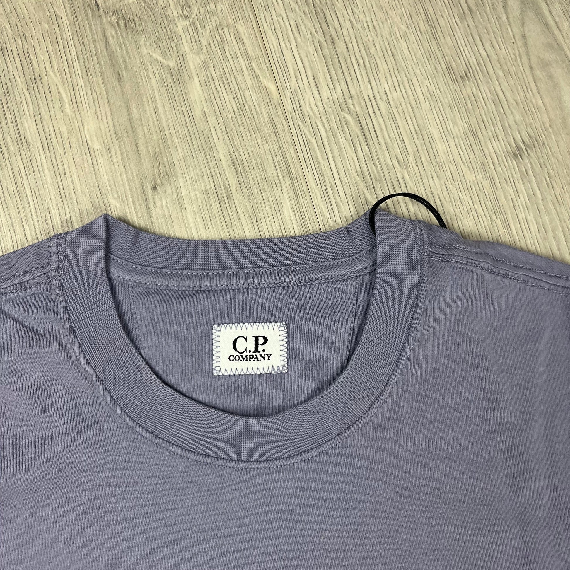 Lavender Violet CP Company T-shirt with centrally printed vertical logo in white with British sailor