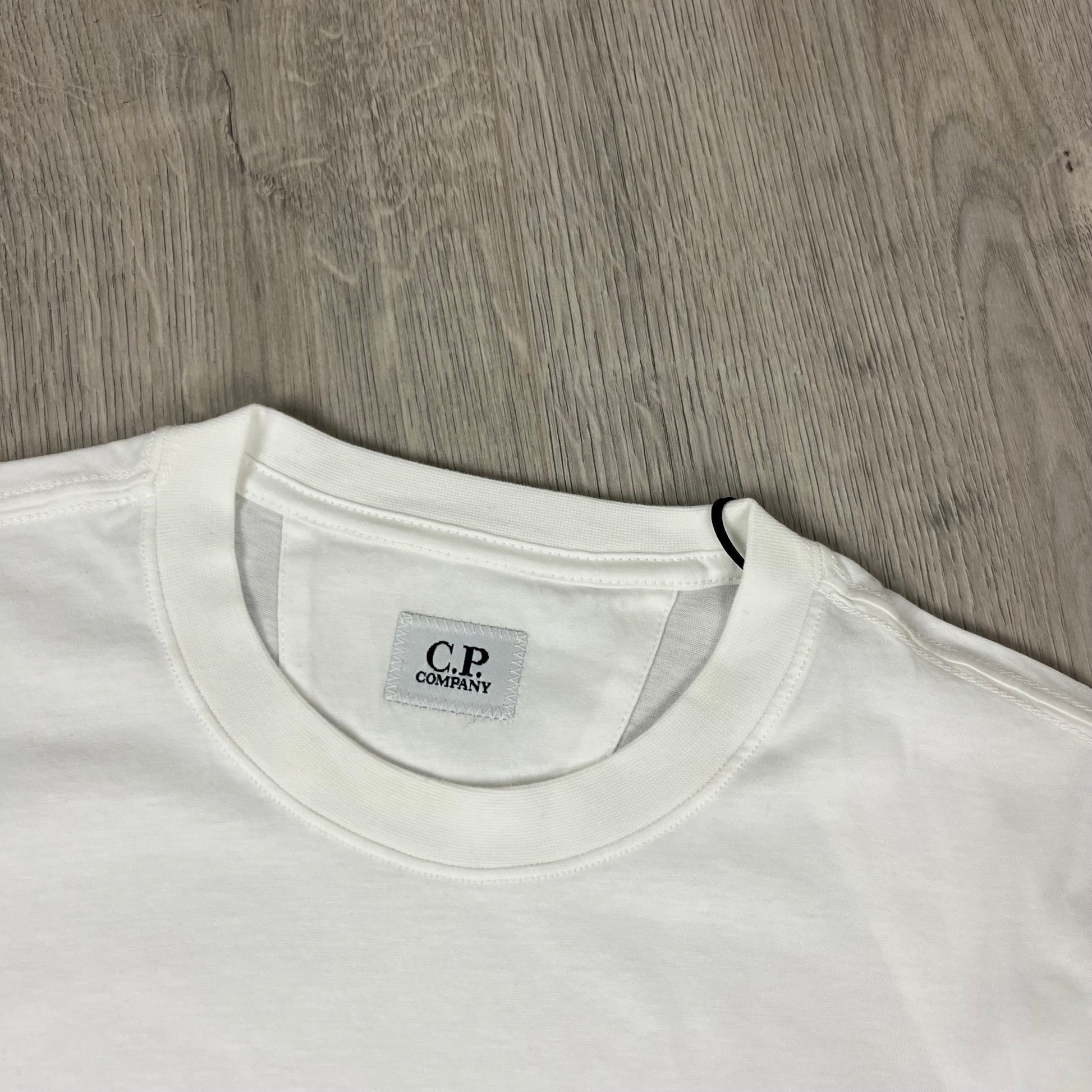 Gauze White CP Company long-sleeve T-shirt with centrally printed box stamp logo in black.