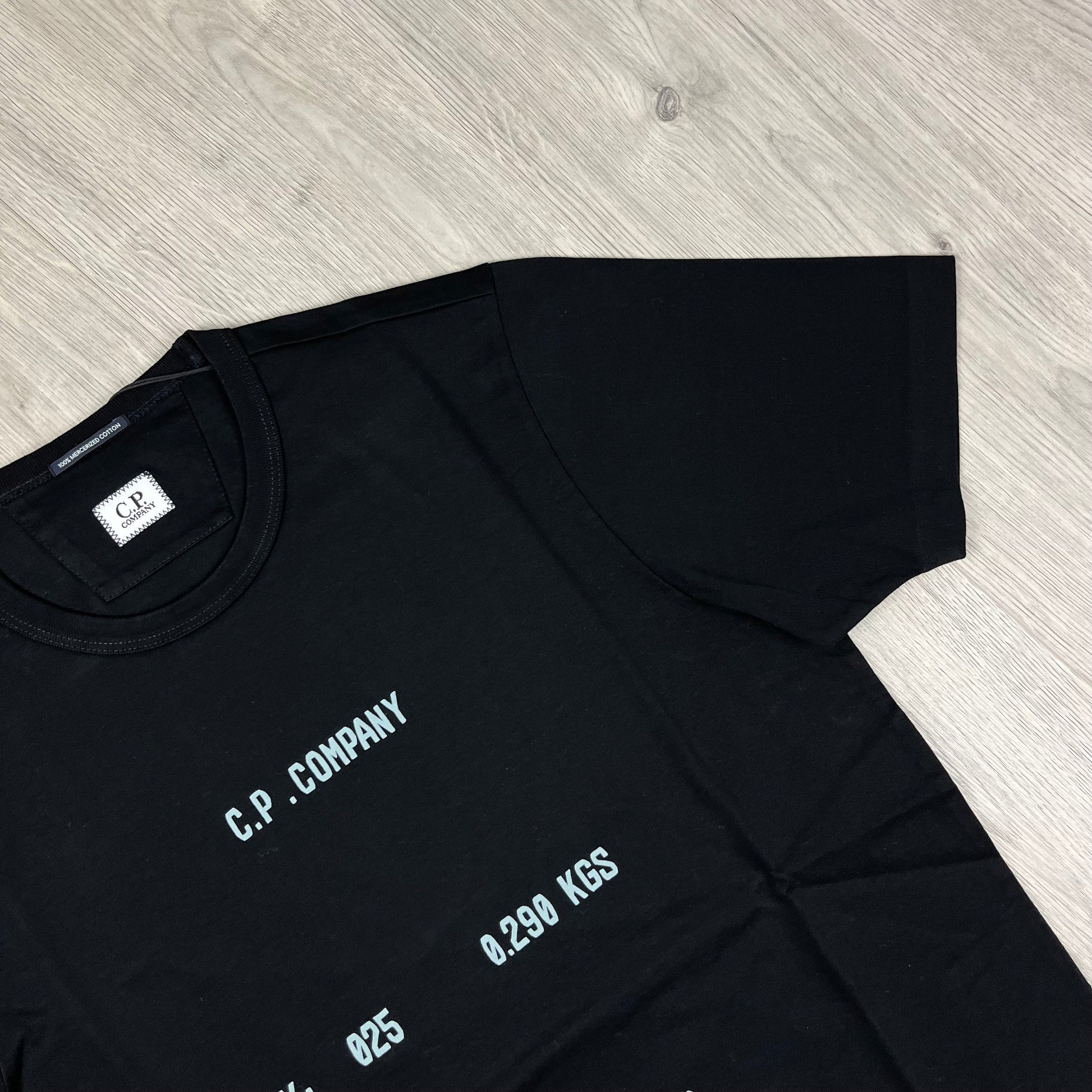 Black CP Company 30/2 jersey cotton T-shirt with centrally printed typographic logo