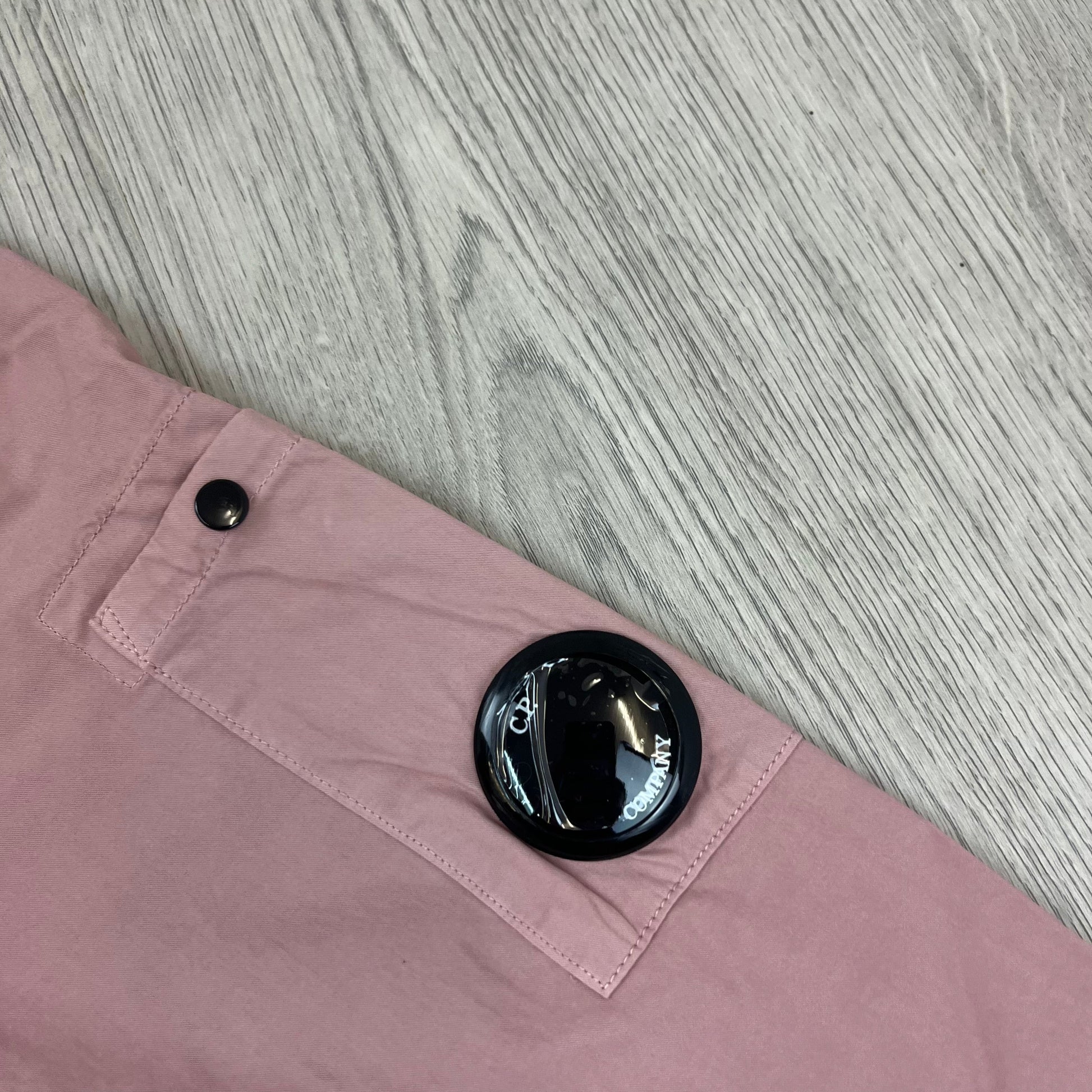 Pale Mauve CP Company gabardine overshirt with sleeve lens and zip fastening