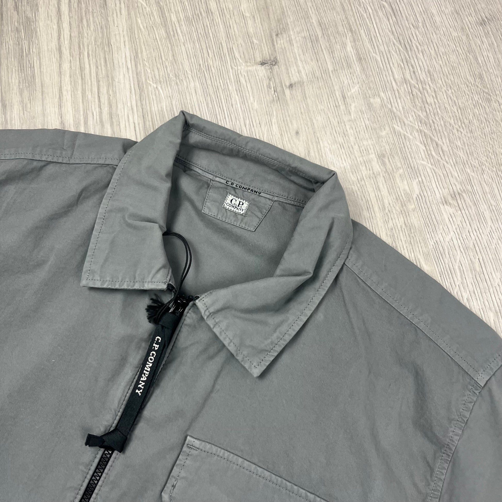 Smoked Pearl CP Company gabardine overshirt with sleeve lens