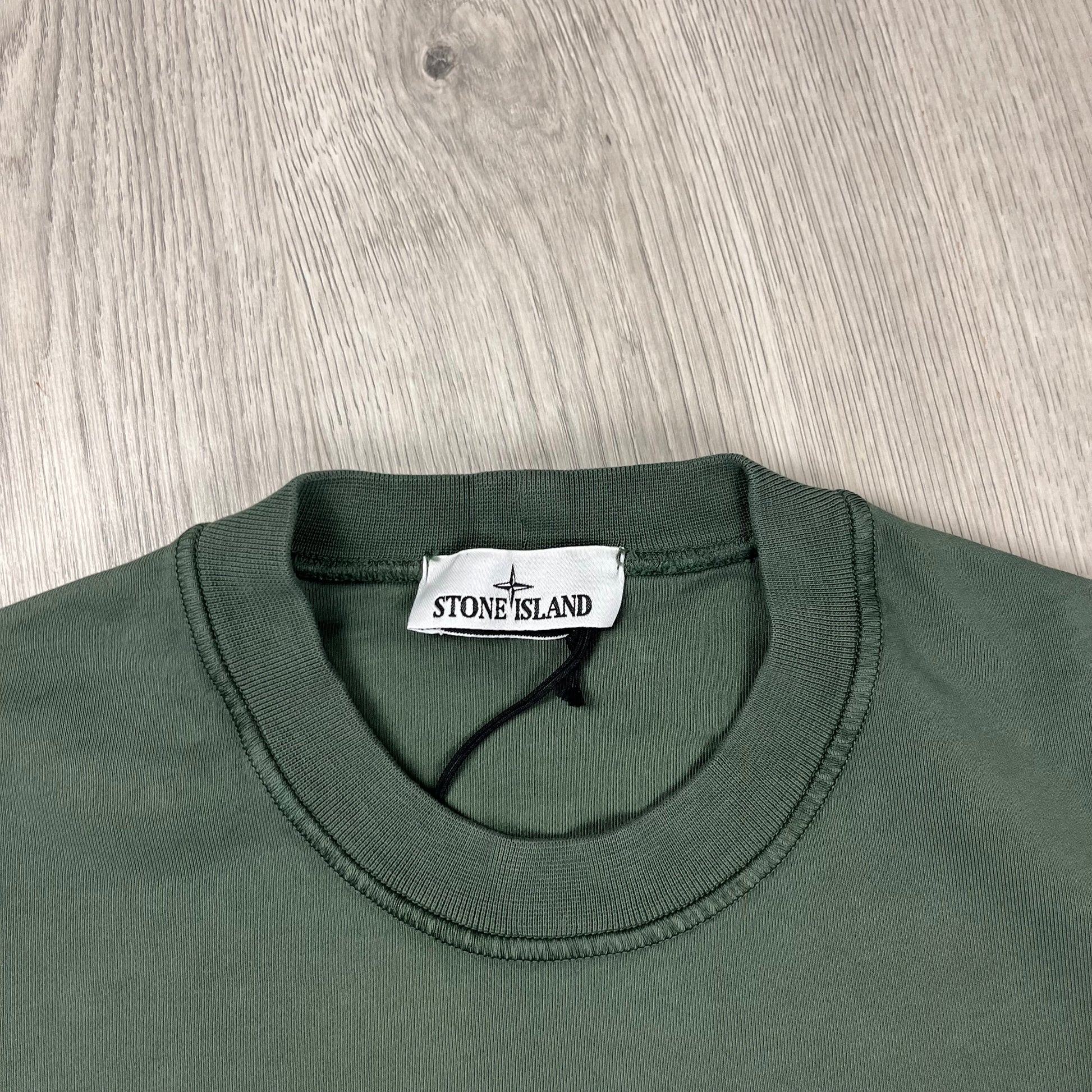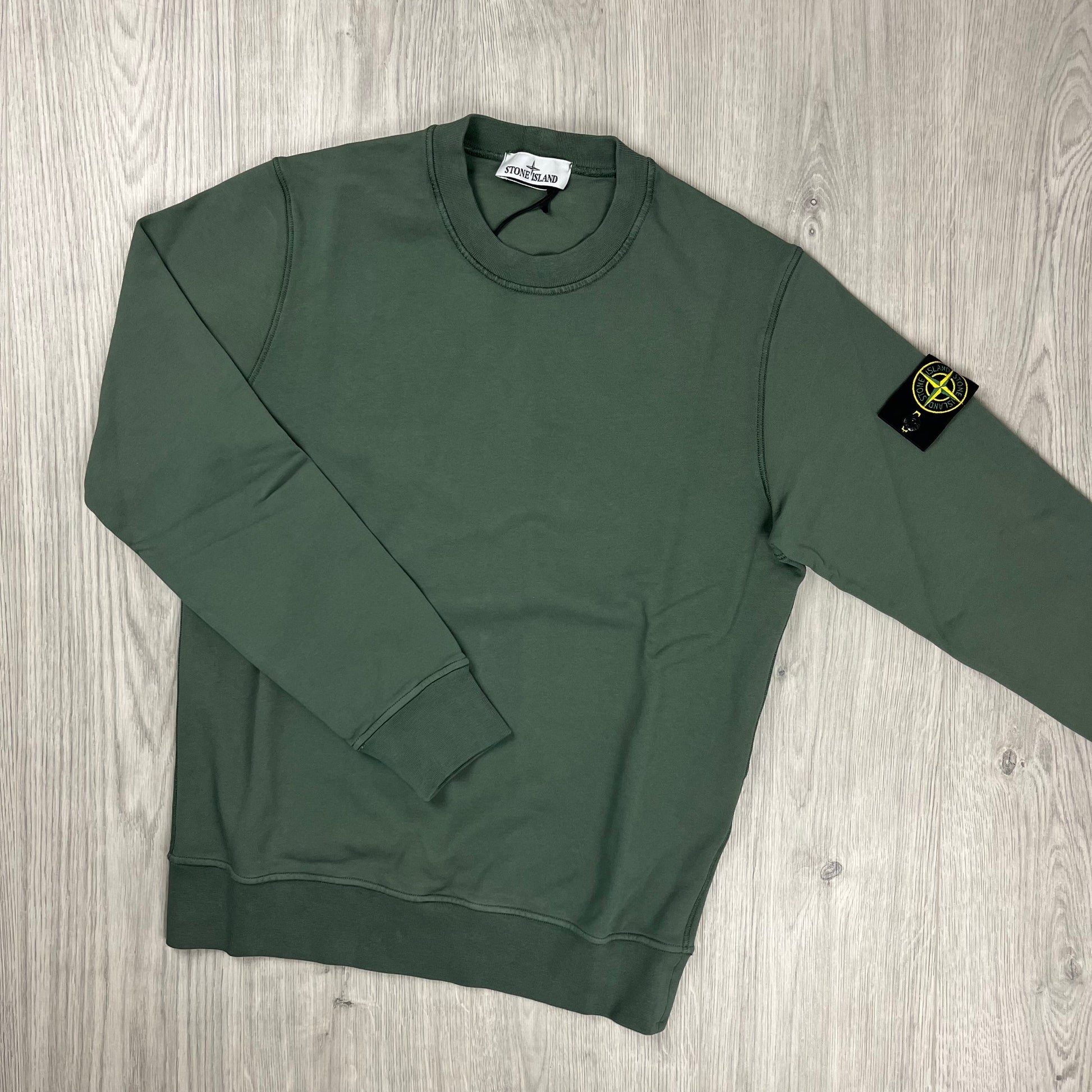 Musk Green Stone Island brushed cotton sweatshirt with sleeve badge