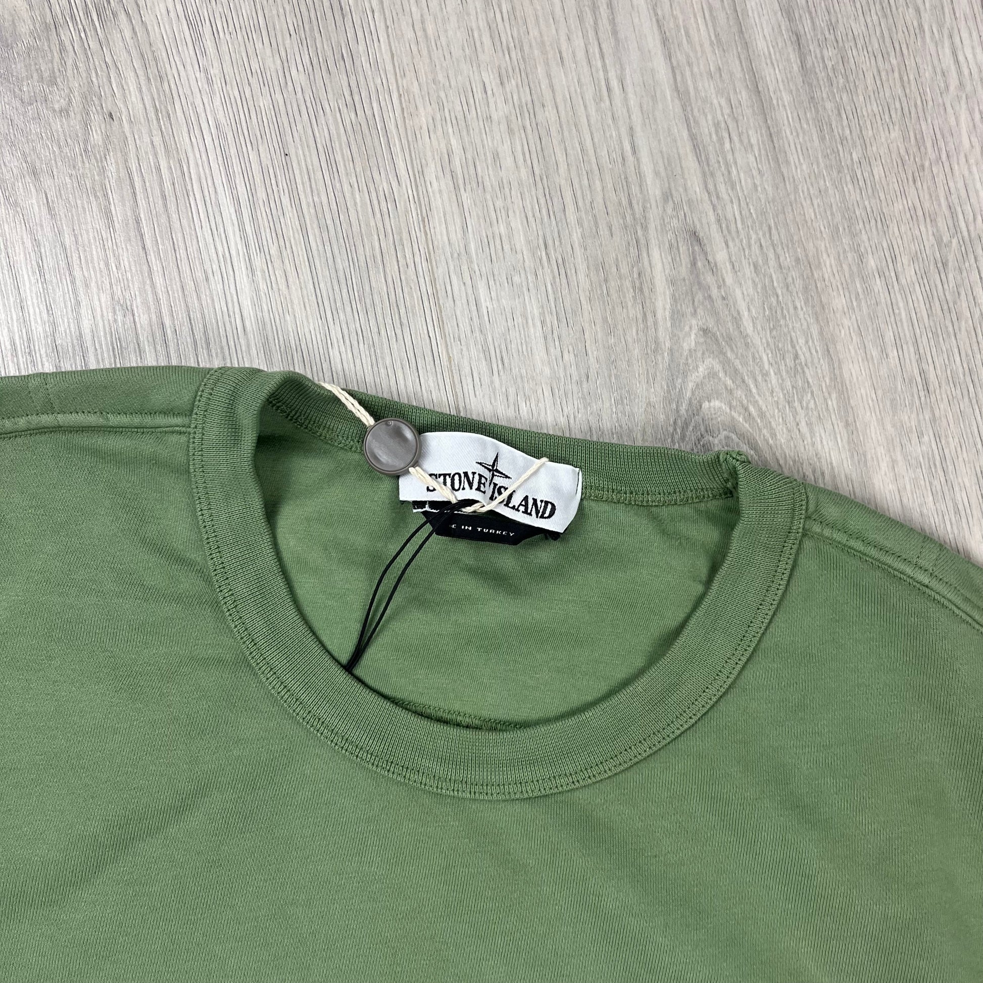 Sage Green Stone Island sweatshirt with centrally embroidered logo