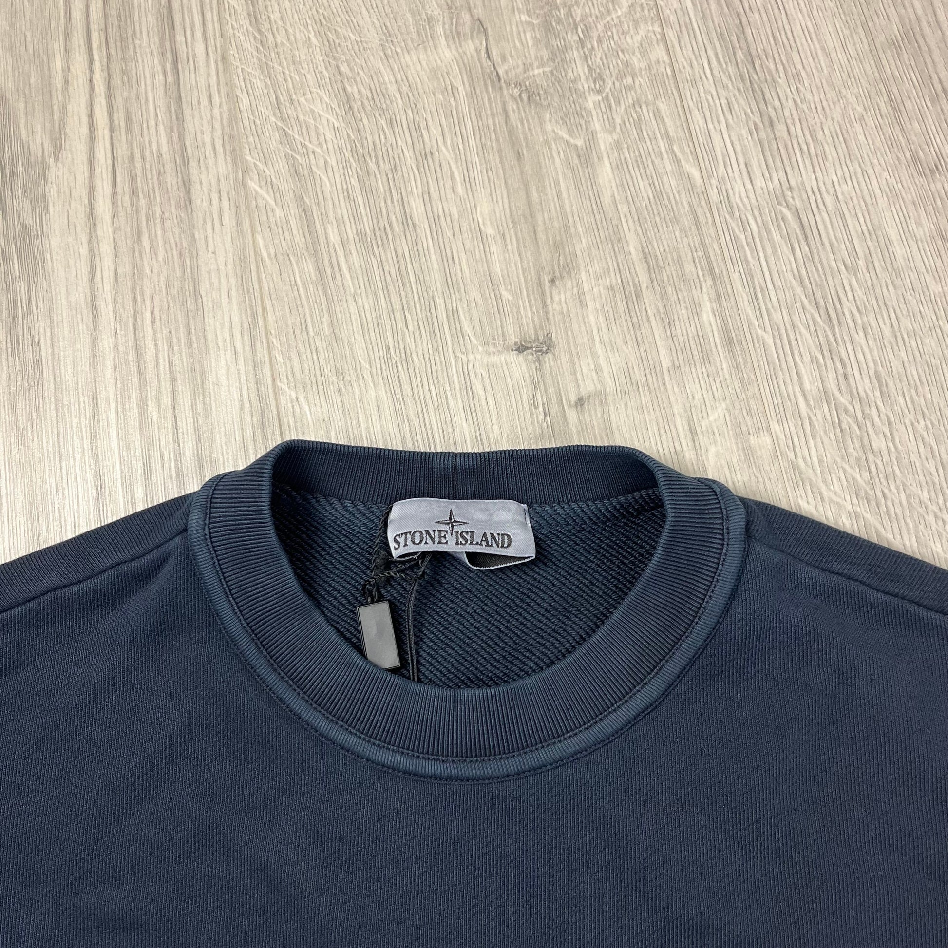 Total Eclipse Navy Blue Stone Island brushed cotton sweatshirt with sleeve badge