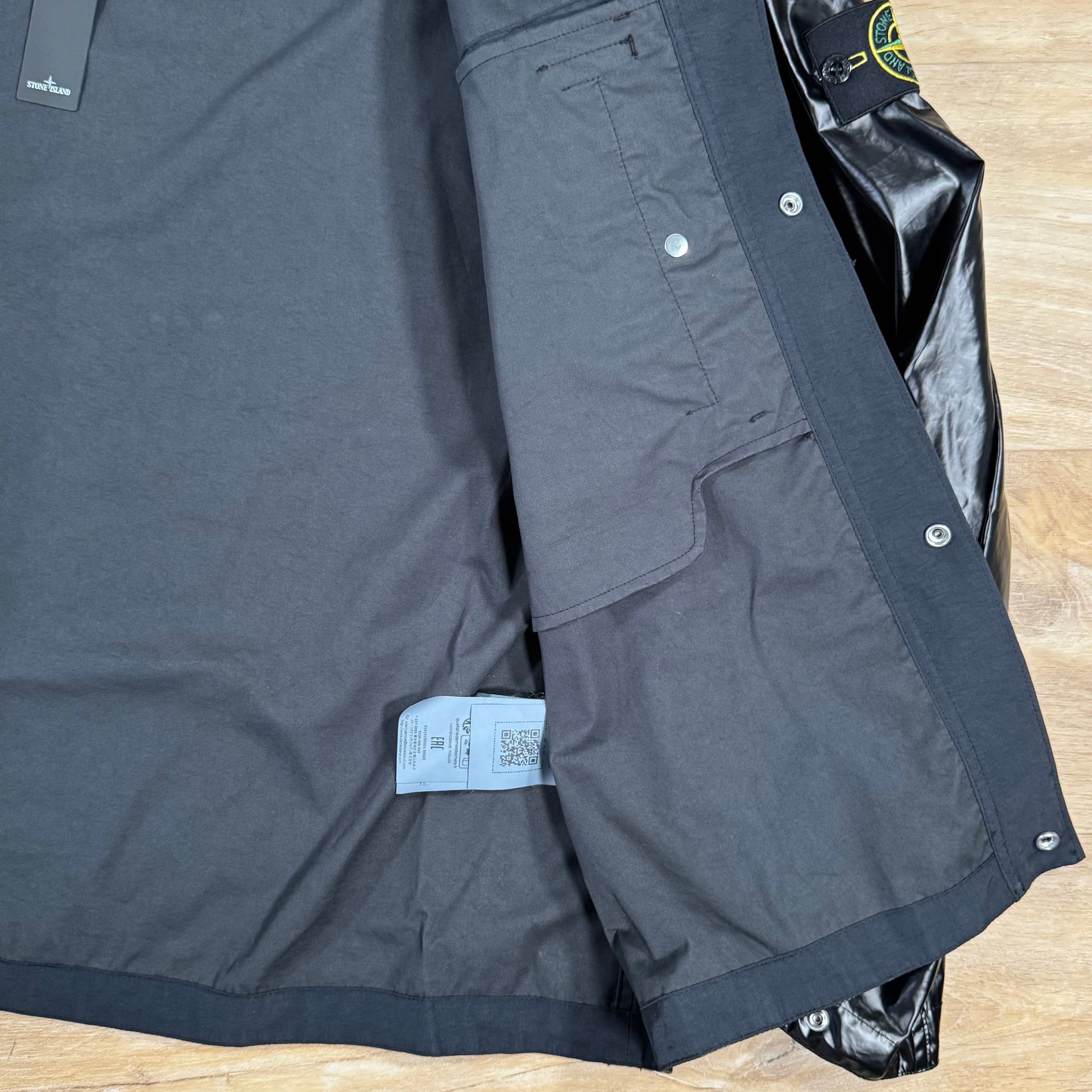 This shirt jacket is crafted from Mussola Gommata, a signature Stone Island fabric made by laminating ultra-light cotton muslin to a transparent polyurethane film, offering water and wind resistance with a distinctive technical texture. The garment undergoes a special double-dyeing process, creating rich depth of color and tonal variation. It features double patch chest pockets with flap and hidden snap fastenings, including lateral access for added functionality. Hidden tightening snaps at the cuffs, a concealed snap front closure on cotton tape, and the iconic Stone Island badge on the left sleeve complete this innovative, utilitarian design.