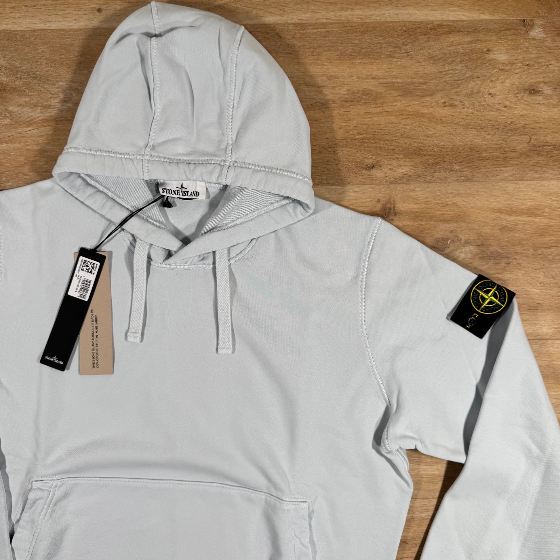 Stone Island Organic Cotton Fleece Pullover Hoodie in Sky Blue