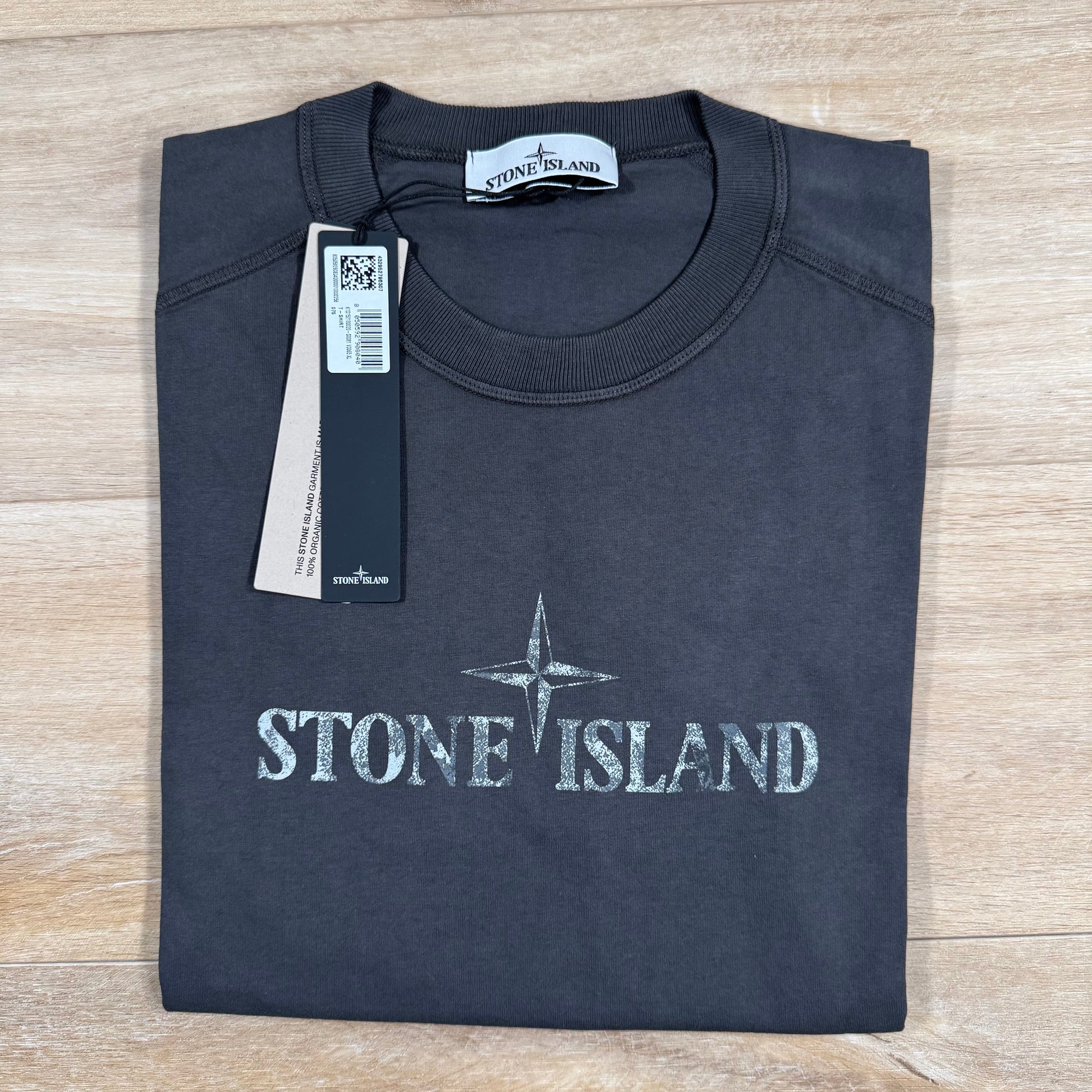 Stone Island Organic Cotton Logo T-Shirt in Charcoal Grey