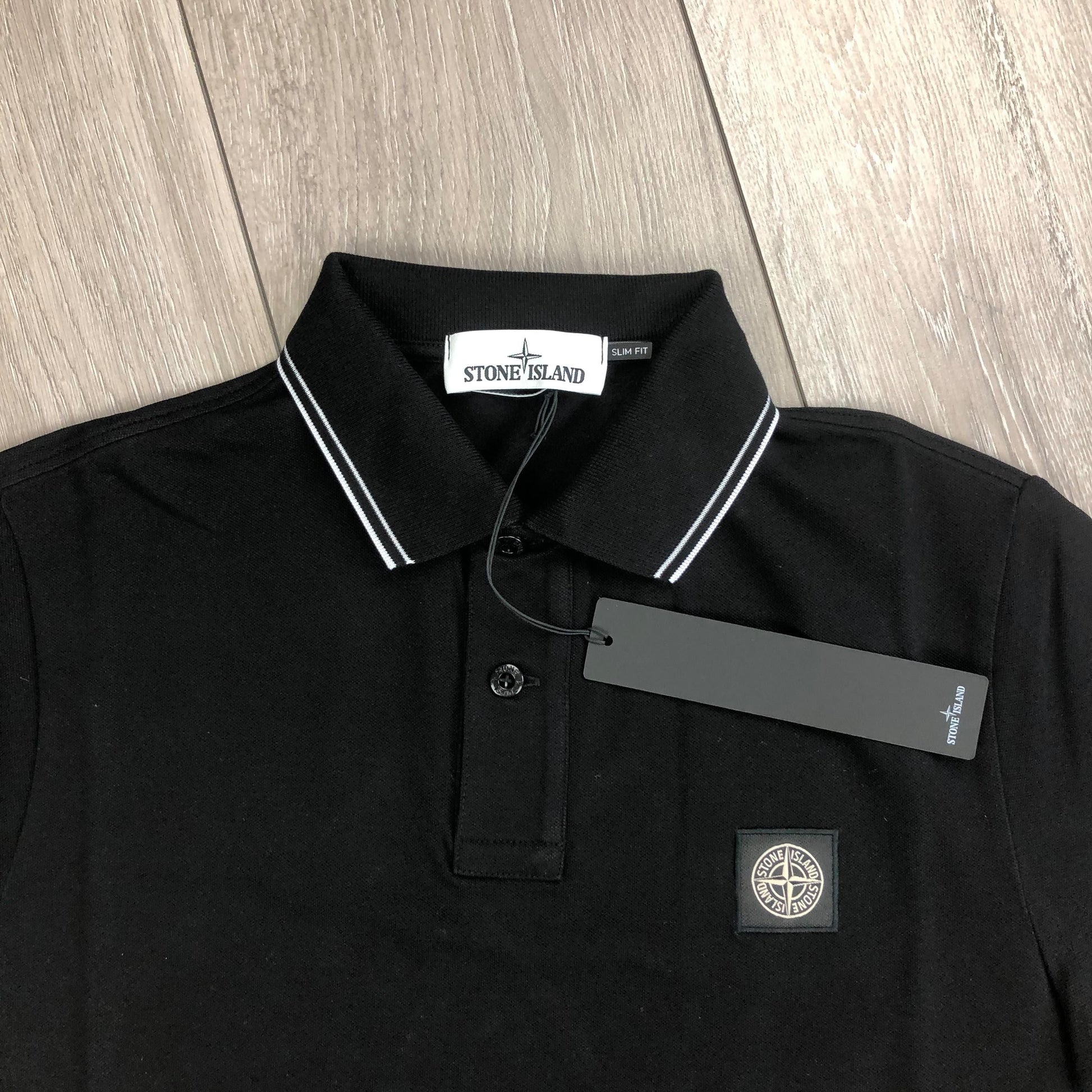 Men’s Stone Island polo in black with patch logo and tipped sleeves & collar