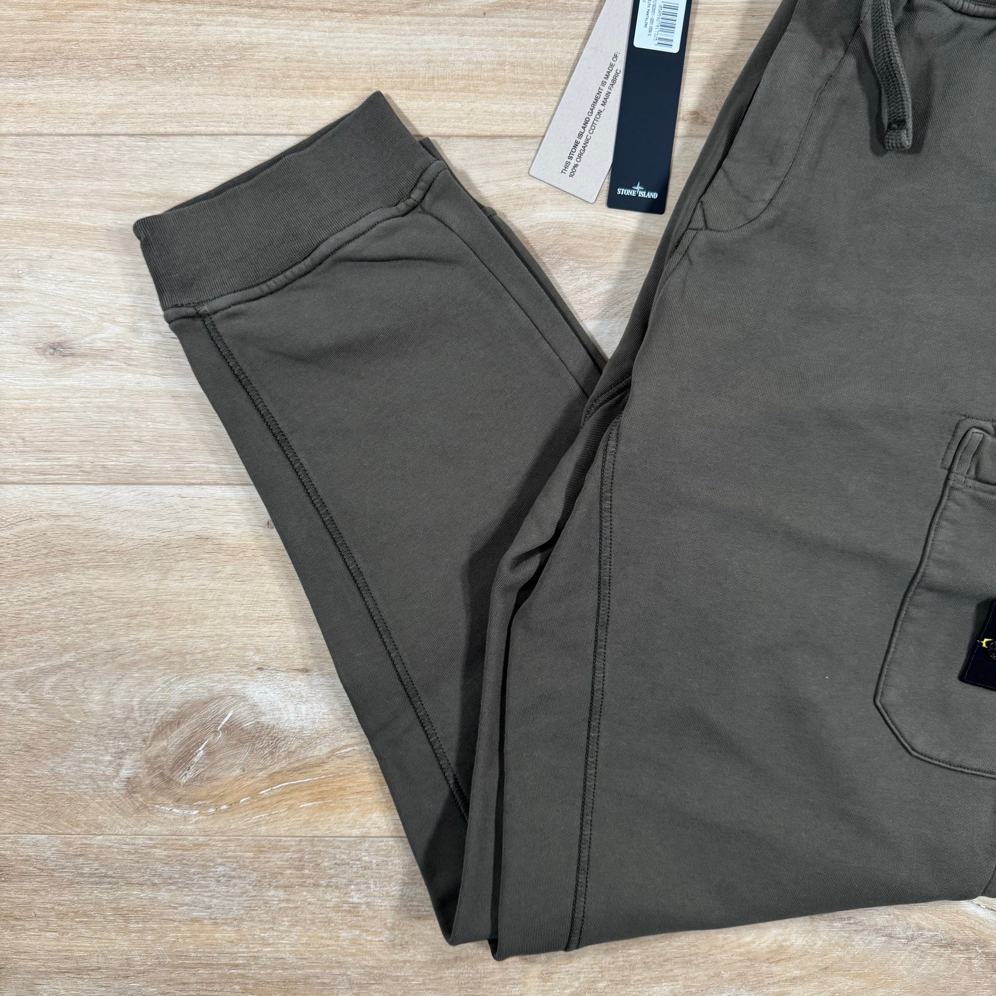 Joggers in organic cotton fleece, garment dyed for a rich, lived-in look. Featuring weft hand pockets, a back slit pocket with hidden snap fastening, and a patch pocket with hidden zip fastening on the left leg, adorned with the Stone Island badge. Overlock seams on the inner legs add subtle detailing, while ribbed cuffs and an elasticated waistband with an outer drawstring ensure a comfortable fit.